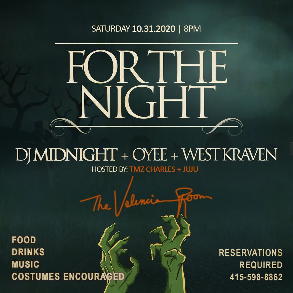 10/31 Sat - FOR THE NIGHT -π»π»π» spooky Halloween theme n slapping Hip Hop all nite. Come thru for delicious food & strong drinks. Follow the flashing bottle lights