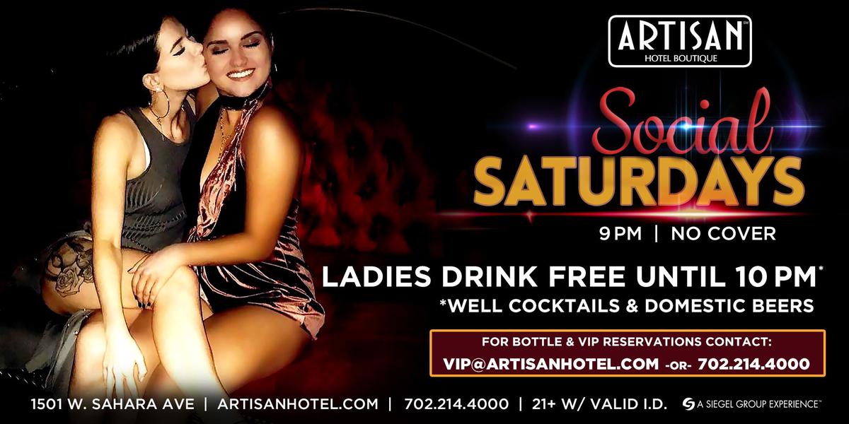 NO COVER! LADIES DRINK FREE UNTIL 10PM! Social Saturdays at The Artisan! 9PM-12AM NO COVER! Ladies drink free until 10pm. (*Well cocktails & domestic beers) *Seating is limited, masks required