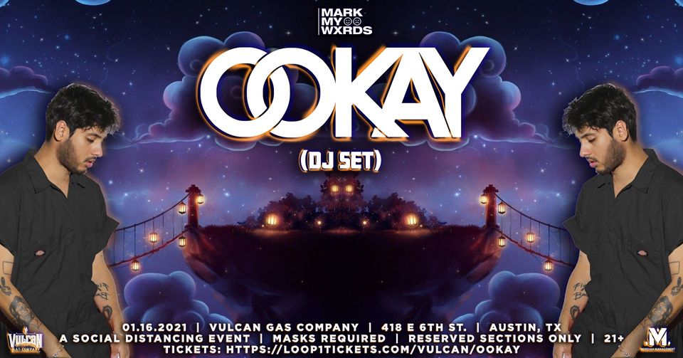 Mark My Words and Veridian Management present: Ookay (DJ Set) at Vulcan Gas Company on 1/16/21.