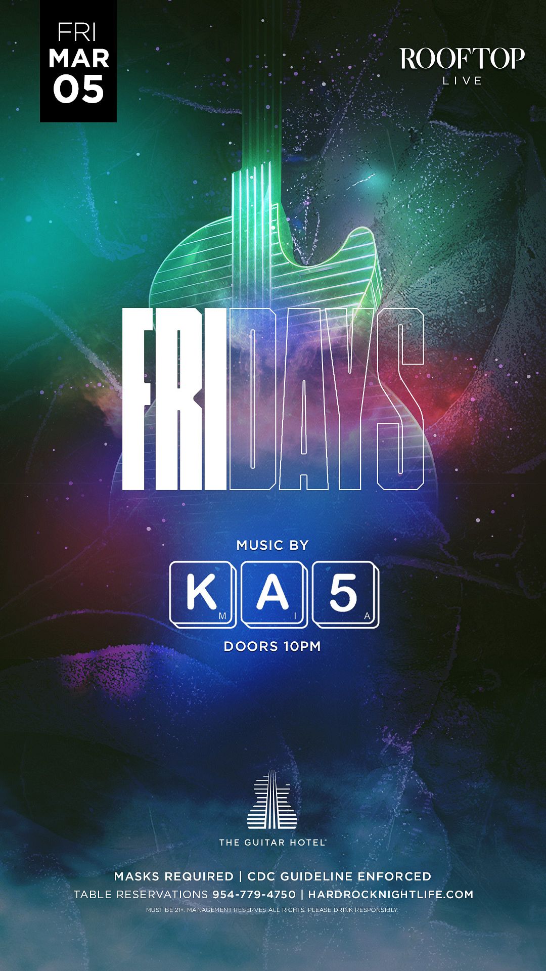 Located on top of DAER nightclub inside The Guitar Hotel! DJs and Performers, champagne toast at midnight and upscale casual dinner!