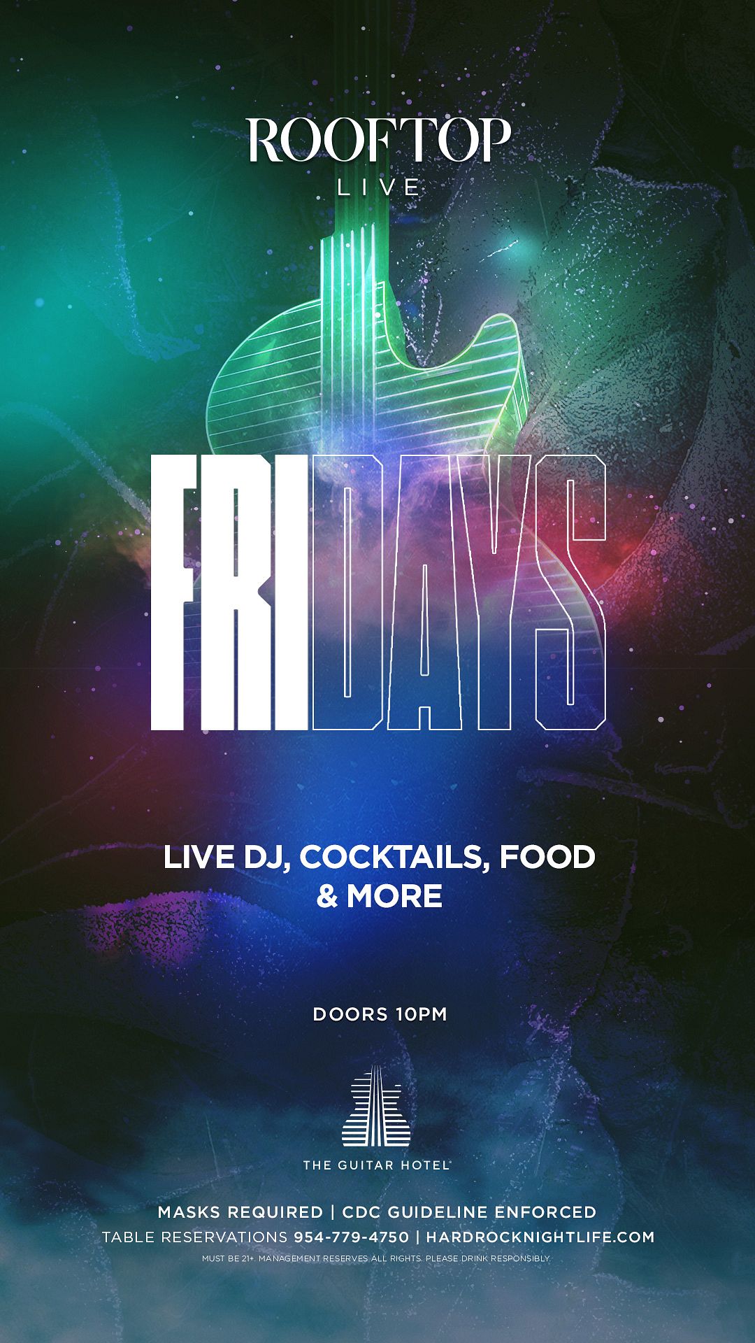 Located on top of DAER nightclub inside The Guitar Hotel! DJs and Performers, champagne toast at midnight and upscale casual dinner!