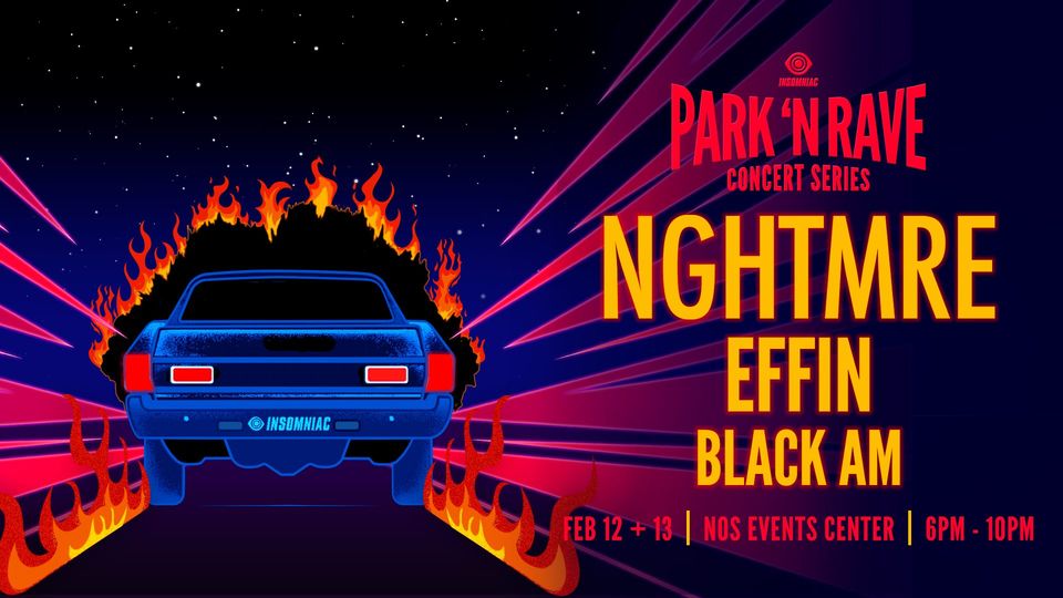 SoCal, you’re QUICK! 👀💨Tickets for Friday are 95% SOLD OUT! Second night JUST ADDED on Saturday, Feb 13 with NGHTMRE, Effin + iamblackam!🔥 Pack the whip and meet us at NOS Events Center! Passes On Sale Now at insom.co/parknravetickets. 🏁