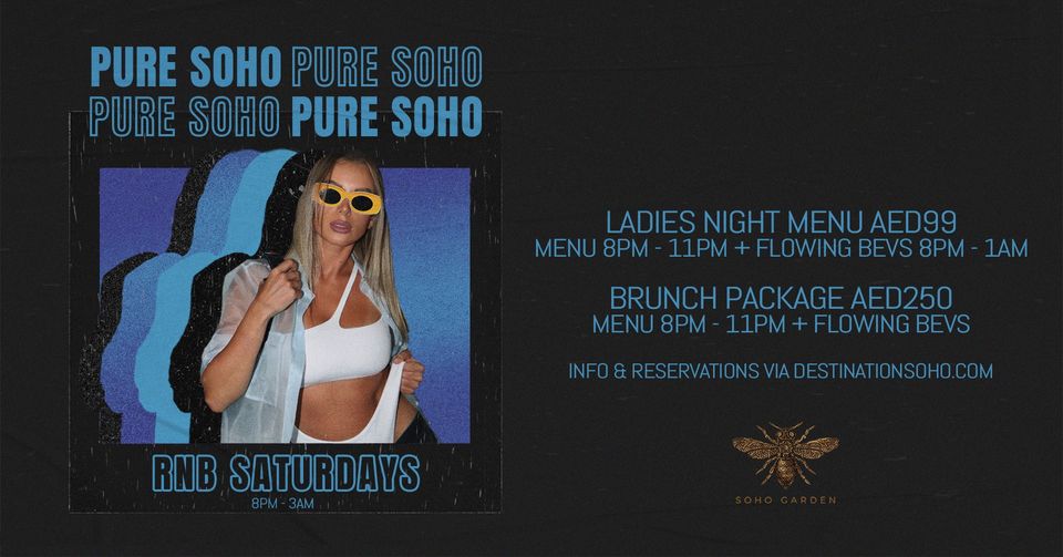 PURE SOHO - Every Saturday with an extended Ladies Night from 8pm-1am!
