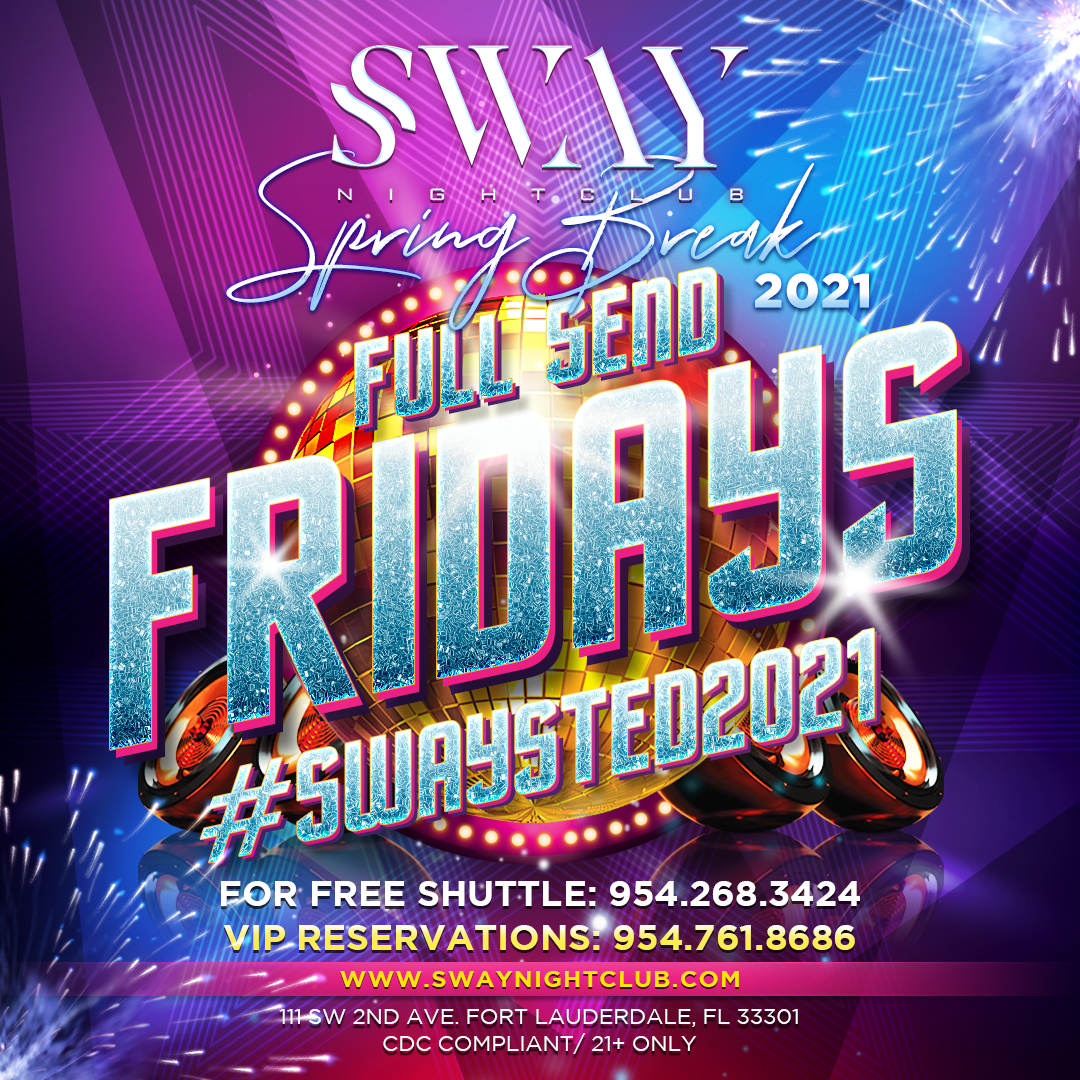 FULL SEND FRIDAYS EVERY FRIDAY NIGHT FOR SPRING BREAK! NO COVER FOR LADIES TIL 12! Mask Required for Entry