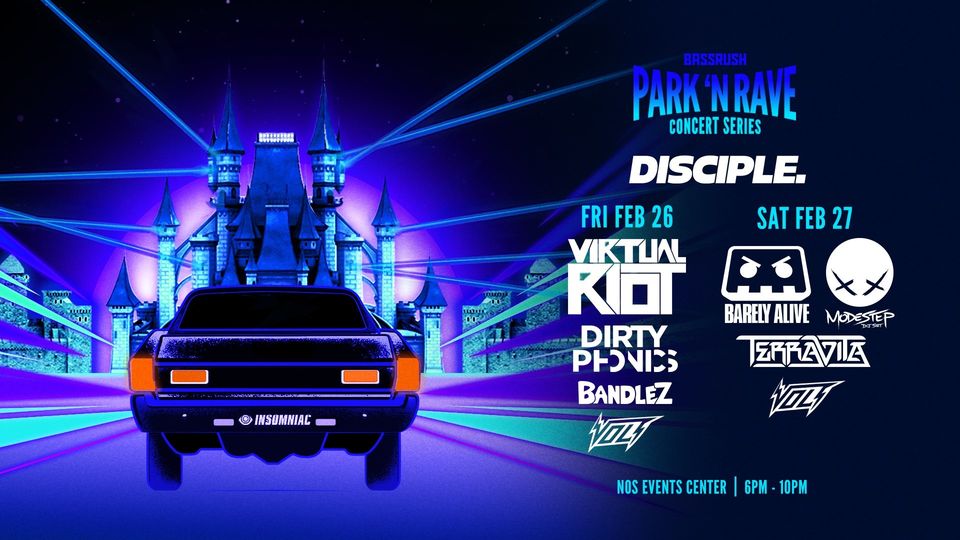 We don’t play! 😈 Let’s SEND IT to the Bassrush #ParkNRave with the Disciple crew for a b2b takeover feat. Virtual Riot, Barely Alive + MORE on Feb. 26 & 27! ⚔️