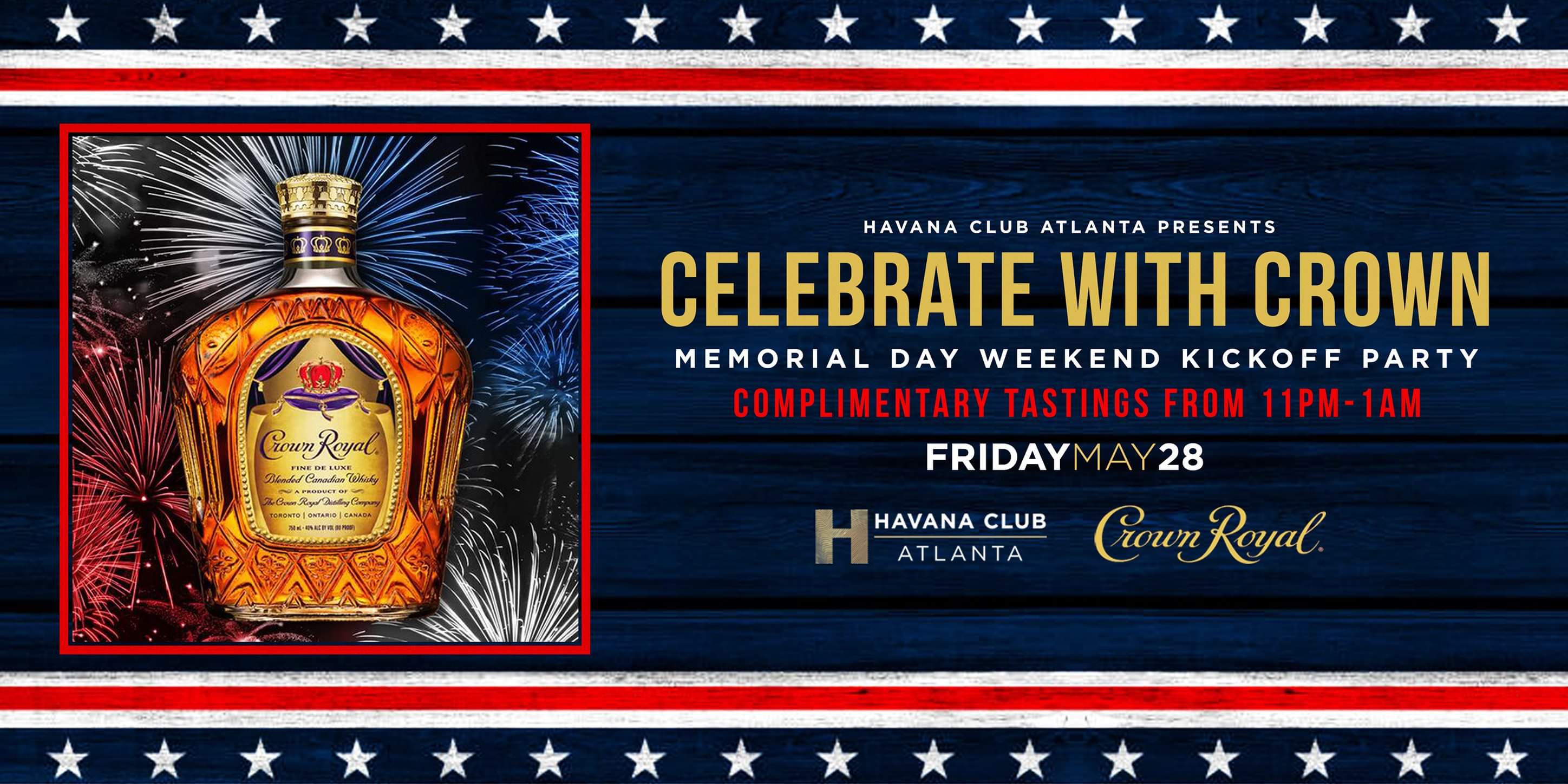 Friday, May 28th, We're kicking off Memorial Day Weekend with our Havana Fridays special event: Celebrate with Crown Party! 2 rooms, 2 environments with the best of Top 40s & Latin beats!