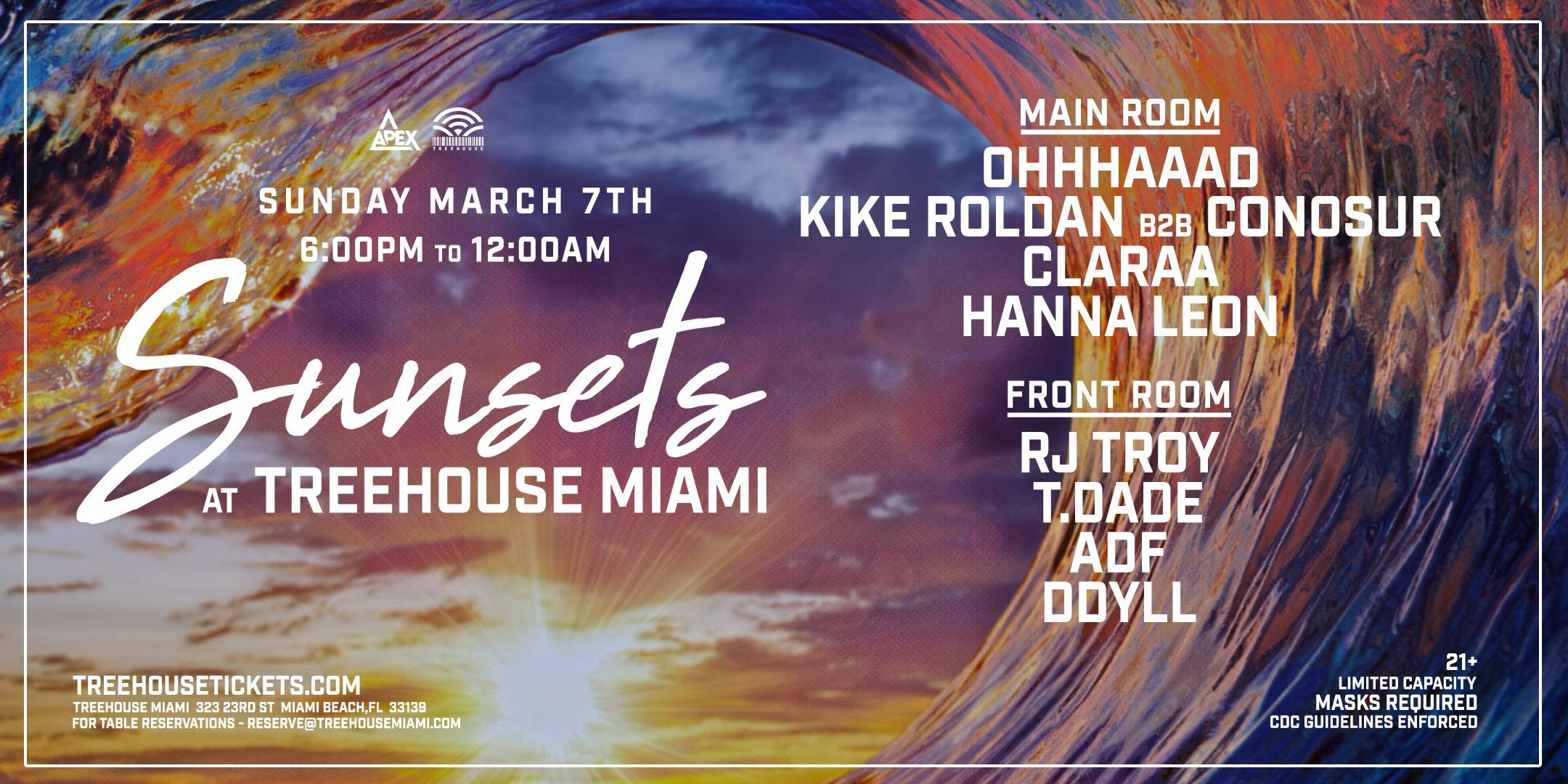Sunday Sunsets @ Treehouse Miami Sunday, March 7th Sunday Sunsets treehousetickets.com