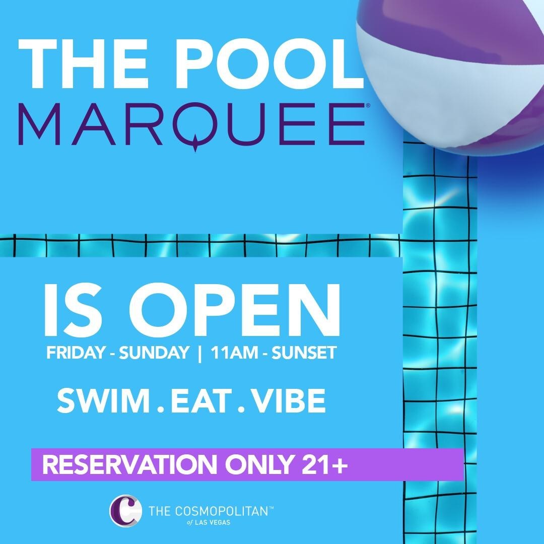 Surrounded by the energy of the Las Vegas Strip, The Pool Marquee is the perfect daytime escape: a truly experiential evolution of music, food and sunlight. Relax in an exclusive socially distant poolside environment and enjoy Marquee's signature food menu, specialty cocktails, and bottle service offerings.