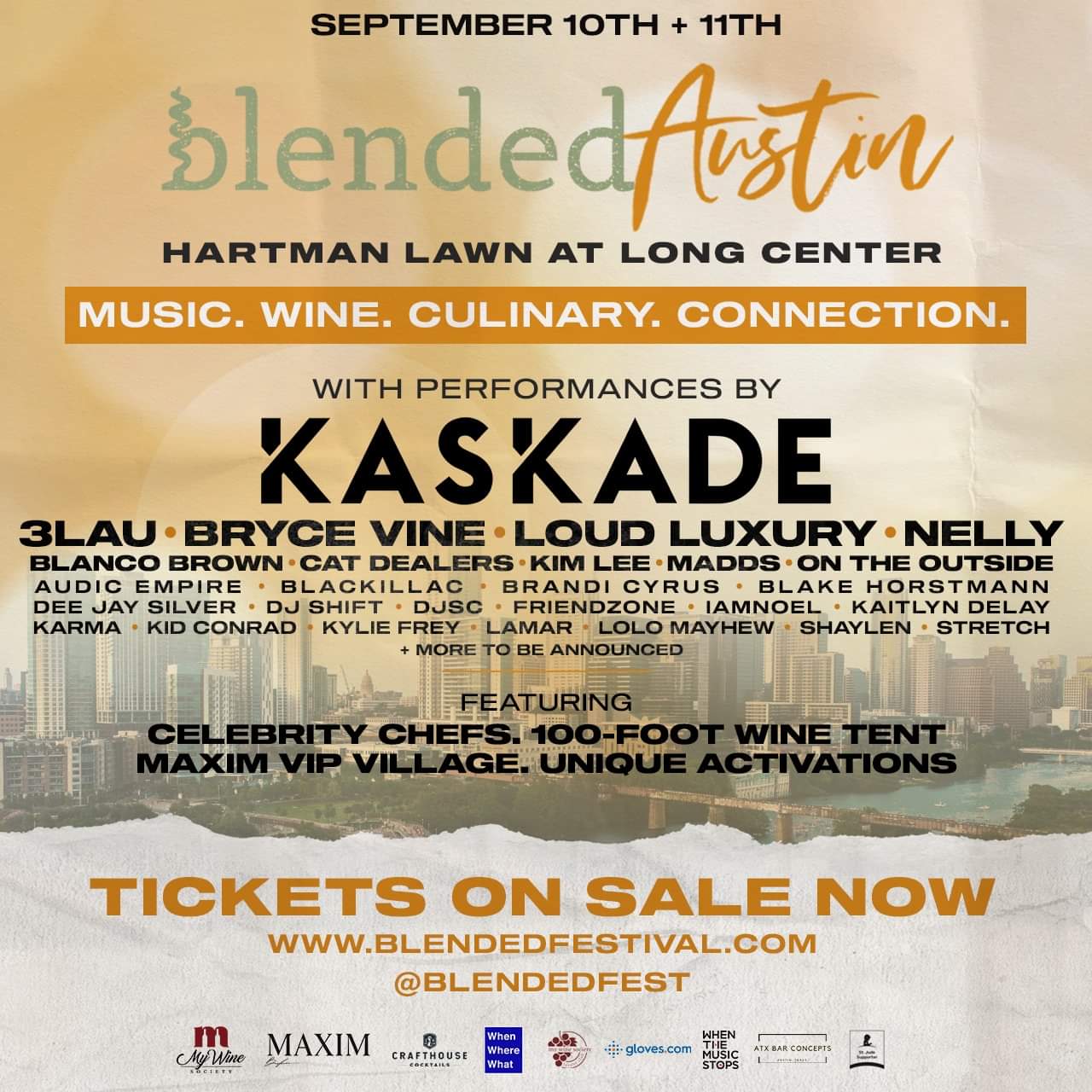 Blended Festival is the social event you've been waiting for! Presenting live music by Kaskade, Nelly, 3LAU, Bryce Vine, Loud Luxury, Blanco Brown and more! Enjoy our 100Ft wine tent and culinary activations, hosted by celebrity guest chefs and sommeliers. Take a mental health break in our WTMS. wellness lounge. Or elevate your experience in the Maxim VIP Village. It’s the 2-day social event you don’t want to miss!