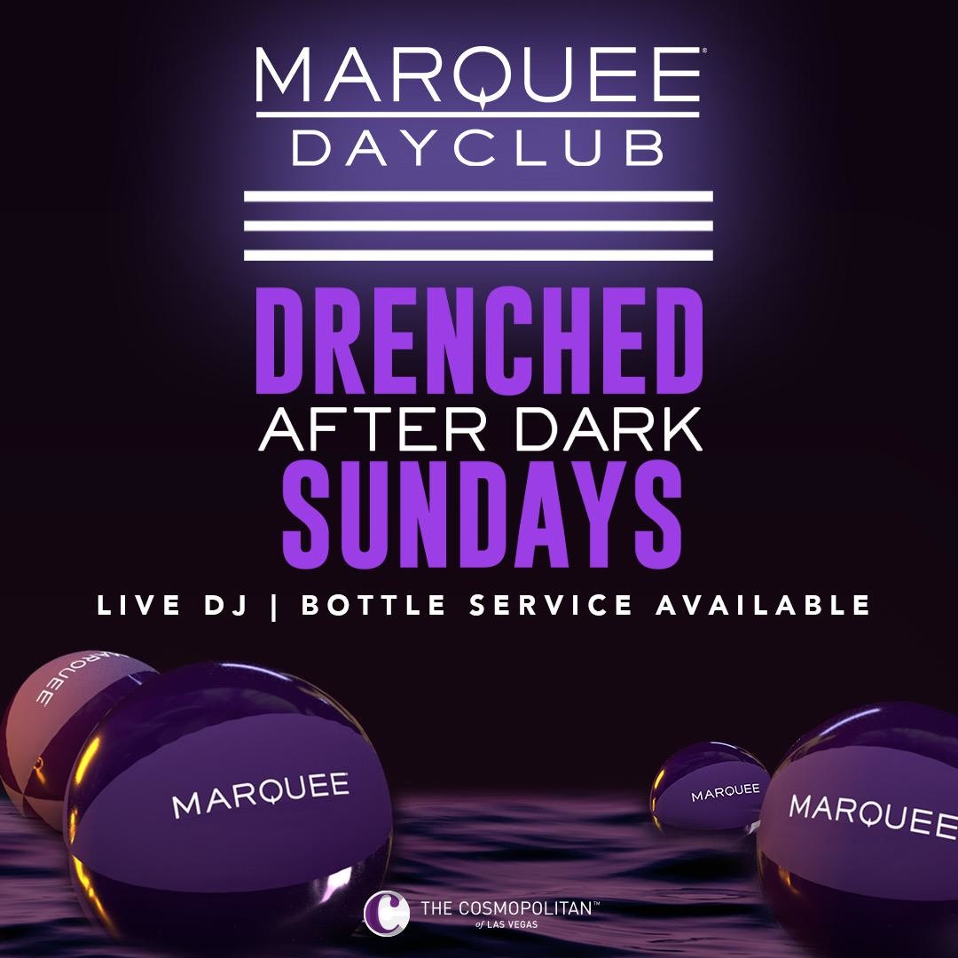 Your Sunday night plans just got drenched! Starting Sunday April 18th, join us at The Pool Marquee for Drenched After Dark. Night time cabana life is back with bottle service under the stars. Be sure to bring your bathing suit as swimming is optional. Head to marqueelasvegas.com to make your reservations and just us in the moonlight!
