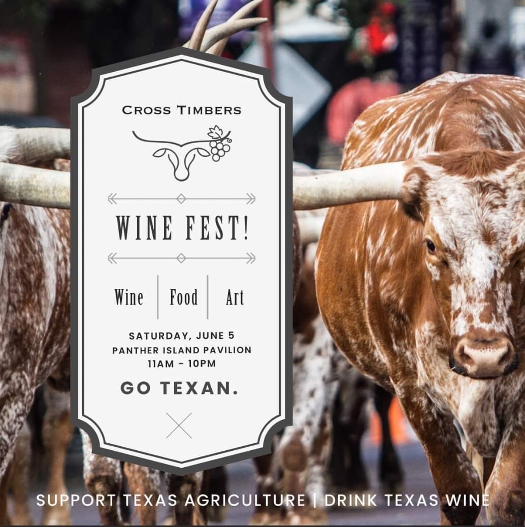 GOTEXAN Food, Wine & Art Festival at Panther Island Pavilion, June 5th, 2021, 11AM-10PM, presented by Cross Timbers Wine Trail Association. The Biggest All Texas Wine Food & Art Event in the State with live music by "Forever Mac" 7:30-10PM. Tickets on Sale May 5th at 8AM, $40 in Advance, $50 at the door, $15 beer ticket available at the door. Benefiting My Brotherskeepers. Support Texas Agriculture, Drink Texas Wine!