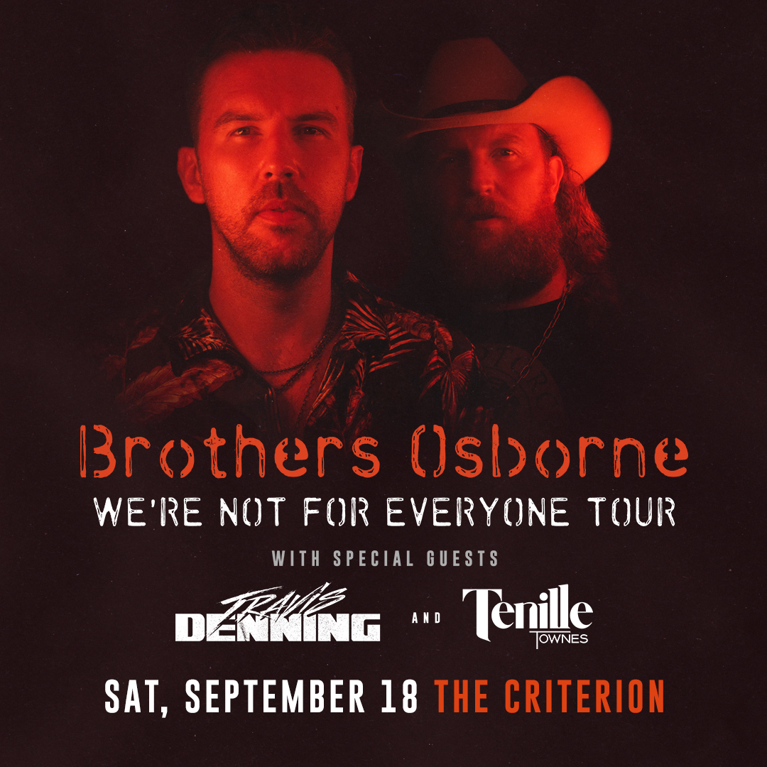 Patchwork and Live Nation Present Brothers Osborne We're Not For Everyone Saturday, September 18, 2021 Doors: 6:30PM // Show: 7:30PM General Admission STANDING & Premium Balcony STANDING available