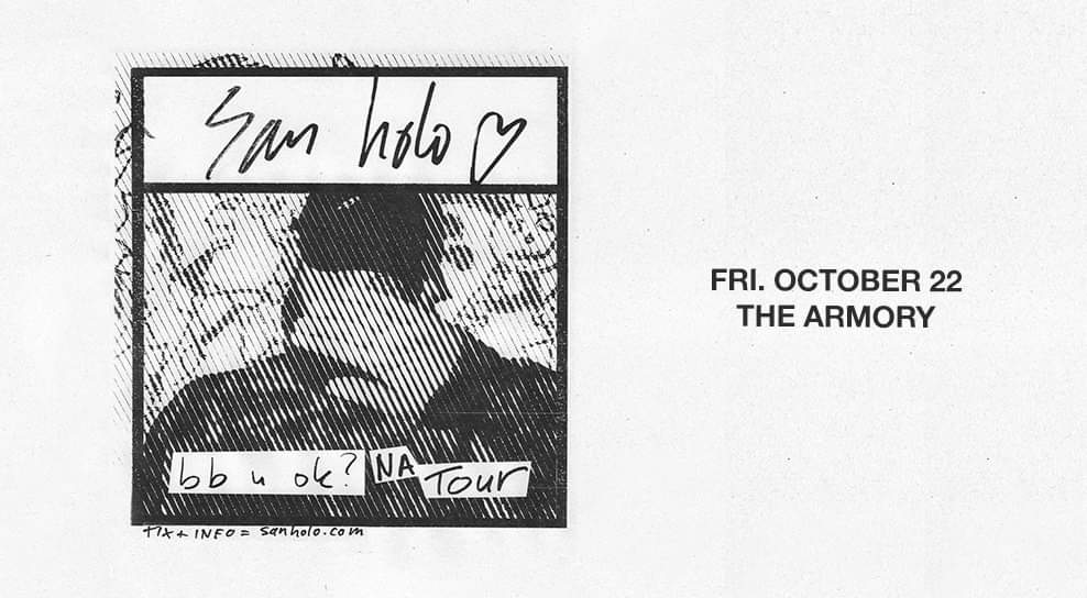SAN HOLO The Armory 10/22/2021 500 S 6th Street Minneapolis, MN Doors: 8:00pm Show: 8:30 Show ends: 1:00am Premium Experience: -> ArmoryMN.com/premium-experience
