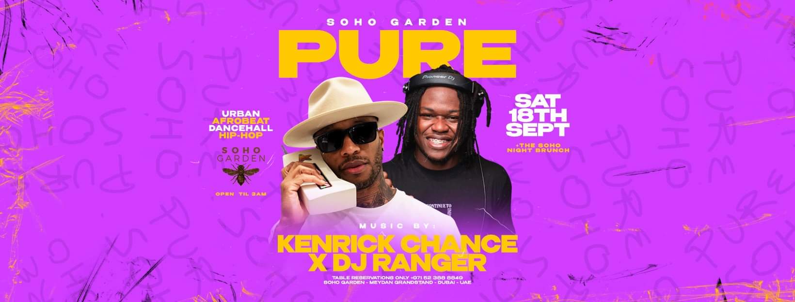 PURE Soho Garden every Saturday with music by Kenrick Chance & DJ Ranger Ladies Night menu incl. unlimited selected beverages only AED120! Info & Reservations: +971 52 388 8849 #SohoGardenDXB