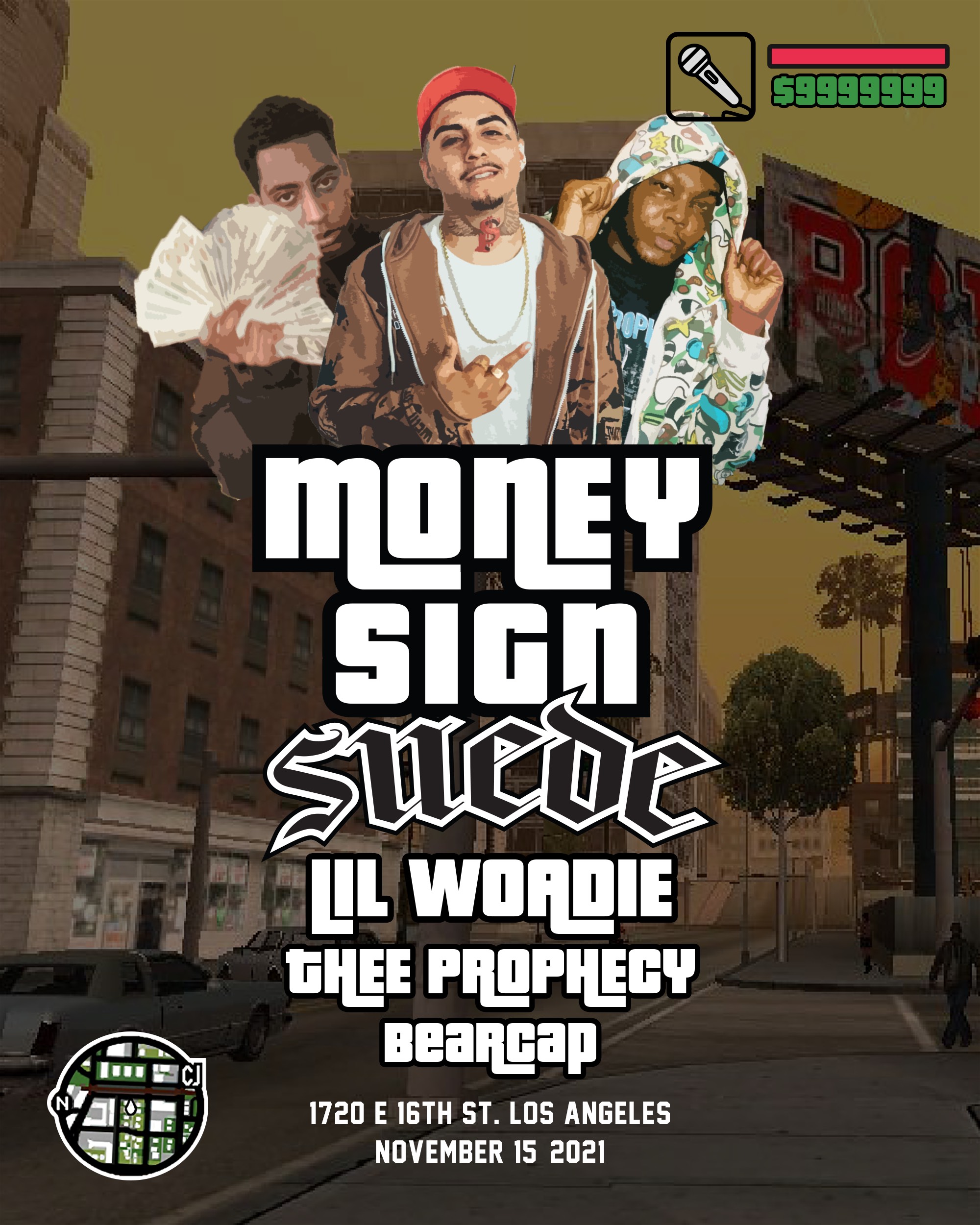 CANCELLED Money Sign Suede with Lil Woadie, Thee Prophecy & Bearcap