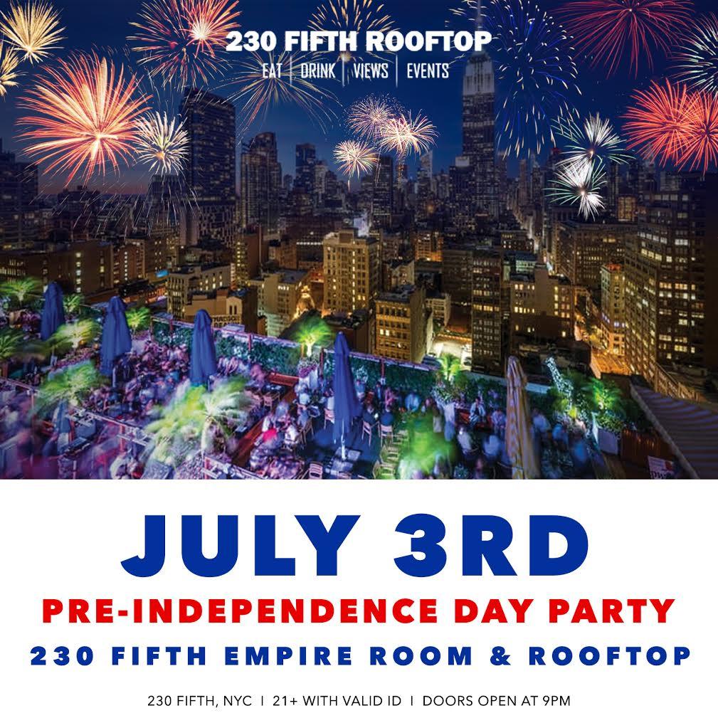 Join us for a Pre 4th of July at the Empire Room @ 230 Fifth on the Penthouse Floor. Located in the heart of NYC!