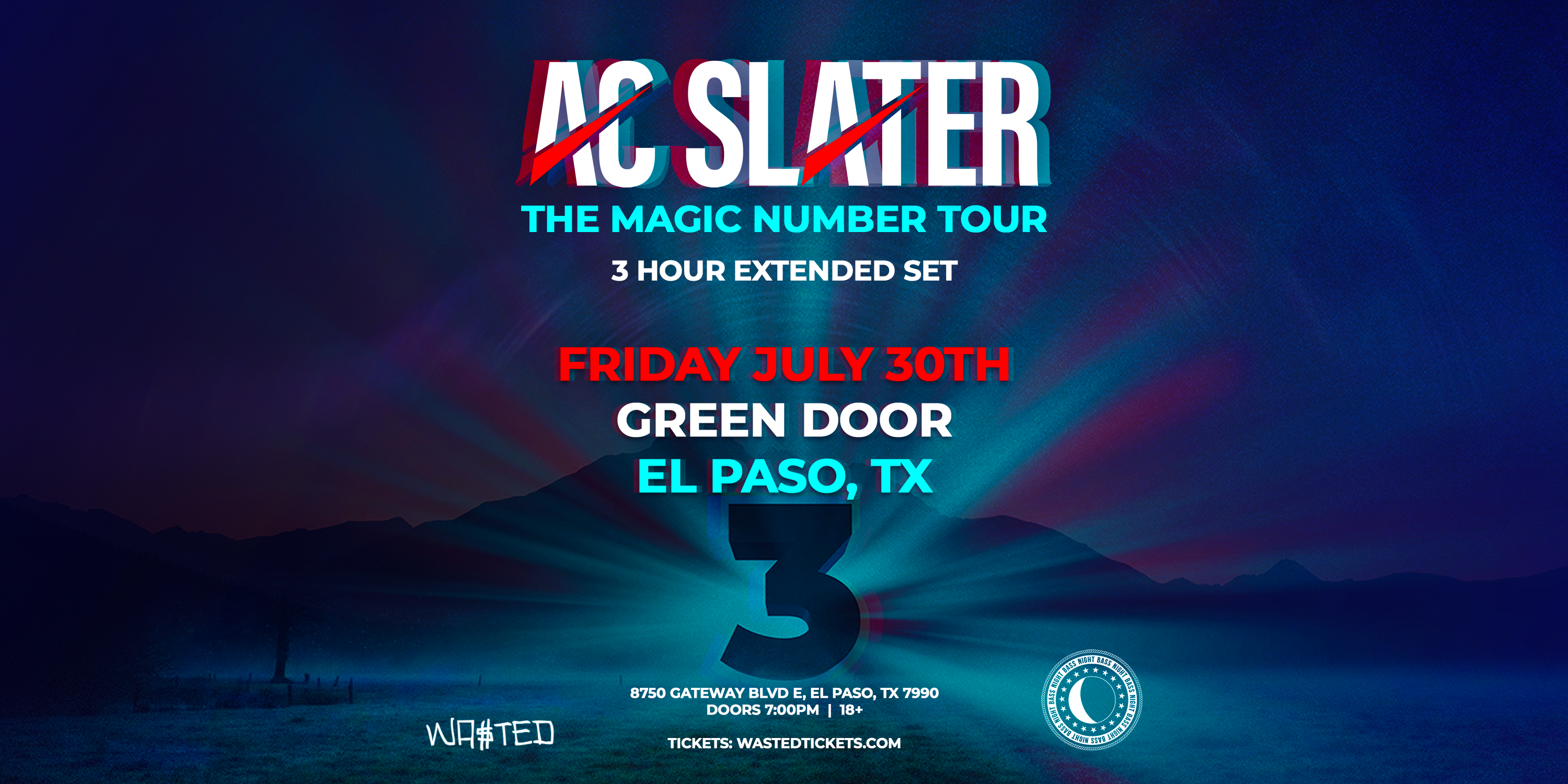 AC Slater arrives at Green Door El Paso on Friday, July 30th, 2021. This event is 18 and over to enter. Doors open from 7:00pm-2:00am. Limited Capacity. Early arrival is highly suggested. All sales are final, absolutely no refunds.
