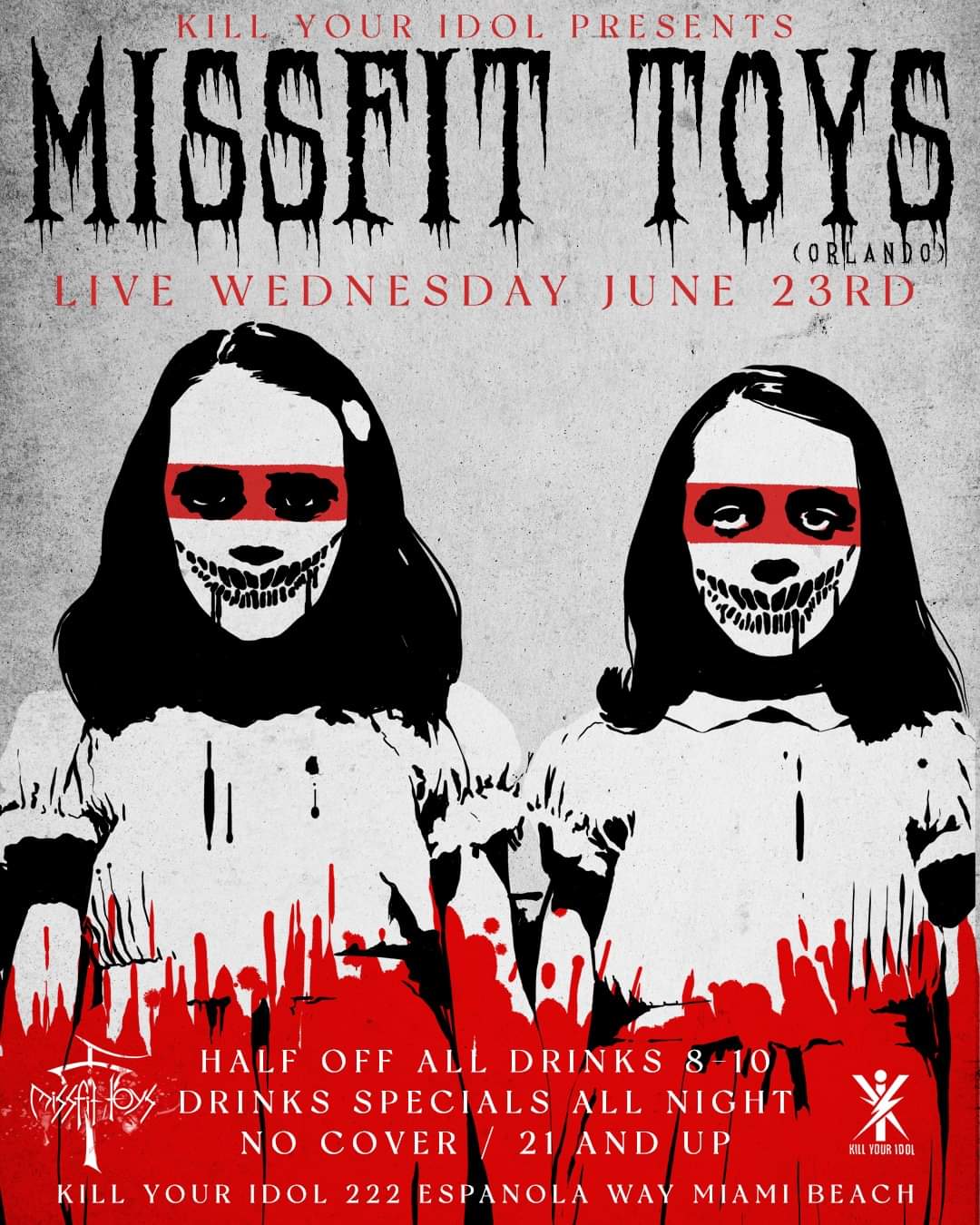KYI Presents - MISSFIT TOYS - Live on our stage Wednesday June 23, 2021 Half off ALL drinks from 8pm - 10 pm Drink Specials all night after 10 no cover / no reservations / 21+ #miamibeachbars #SouthBeachbars #KYI #KYIMiami #KillYourIdol #MissfitToys