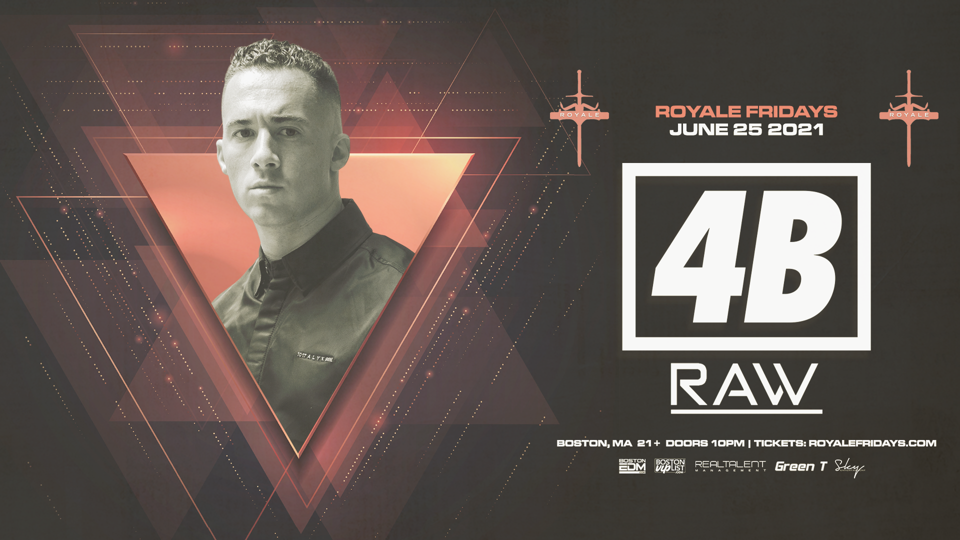 Known for spreading his energetic Jersey club sound into electronic music, 4B is slated to blow the roof off Royale on Friday June 25th. 21+