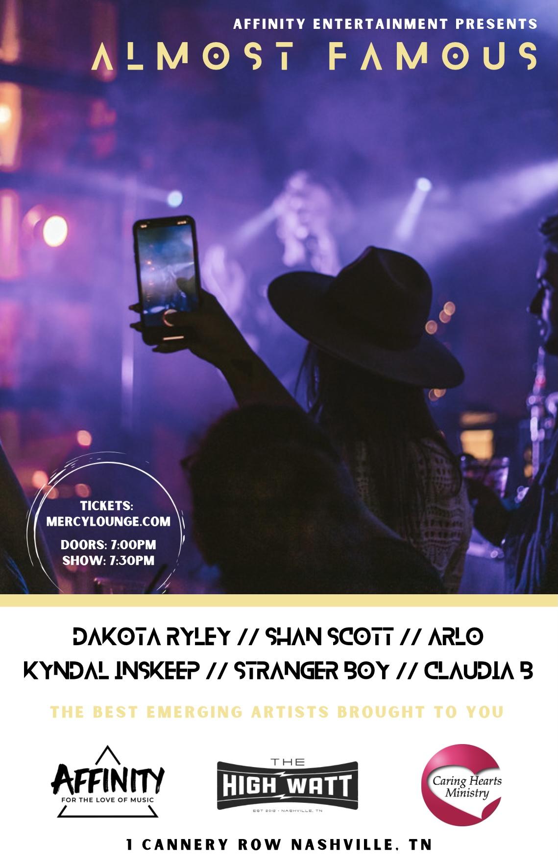 Almost Famous - the best emerging artists brought to you Performances by Dakota Ryley, Shan Scott, Arlo, Kyndal Inskeep, Stranger Boy, and Claudia B VALID GOV'T ISSUED PHOTO ID REQUIRED - NO EXCEPTIONS