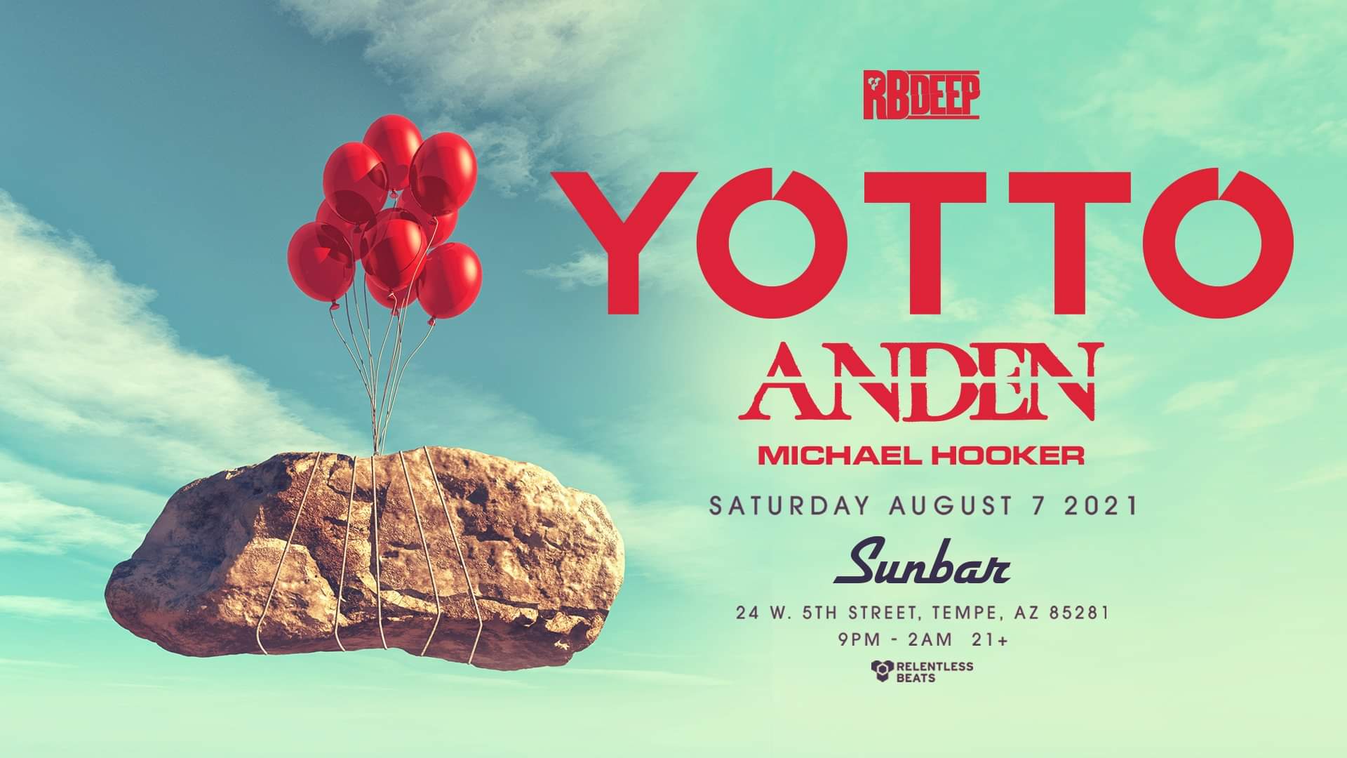 We're floating to the sounds of Yotto and Anden on Saturday August 7 at Sunbar 🎈 Support Michael Hooker Tickets on sale Thursday June 17 at 11am -- http://rb.ht/Yotto21 For table service reservations and pricing, please call (480) 408-5010