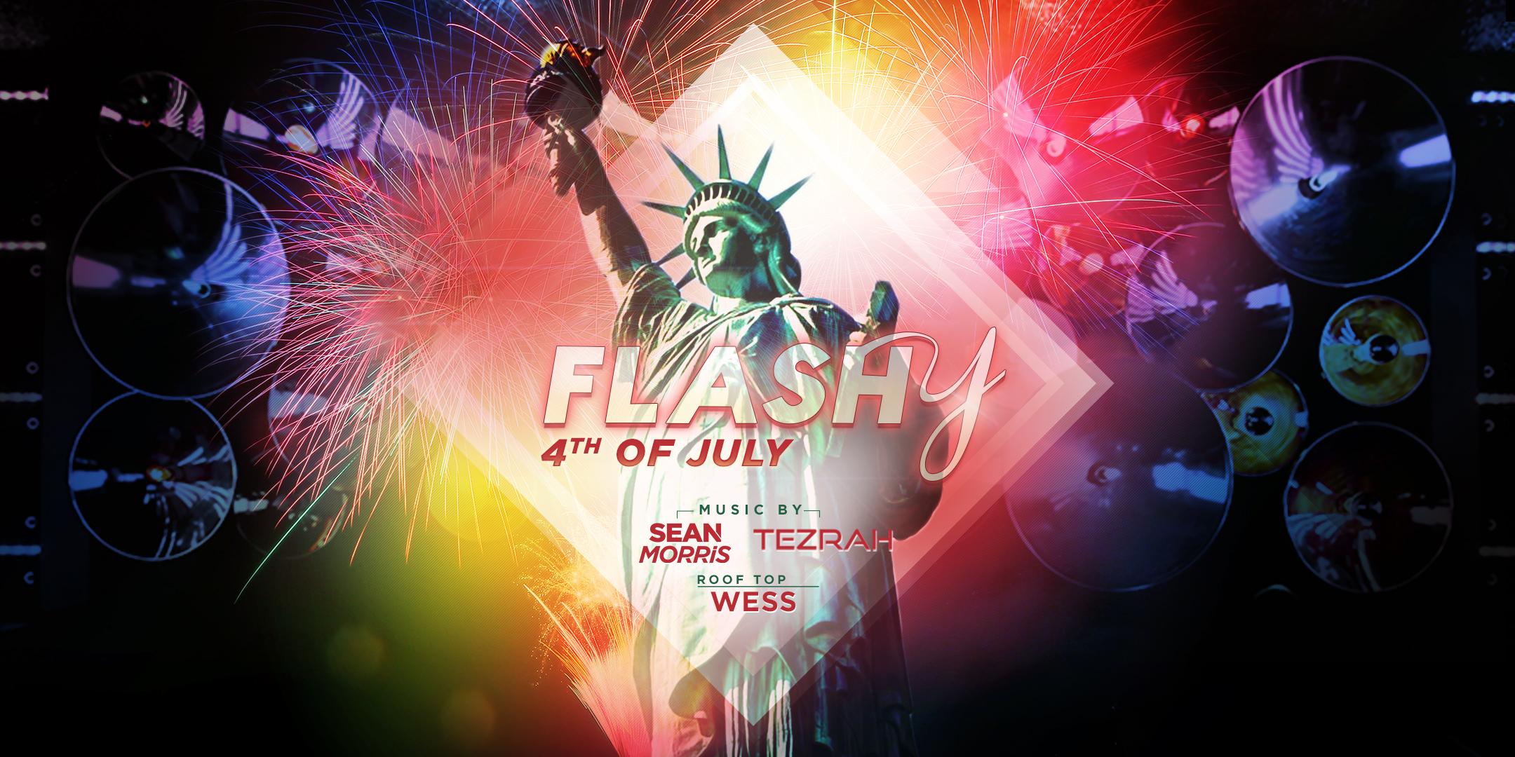 Come celebrate the 4th of July at Flashy with extended bar till 4 AM!! Doors open at 10 pm, and cover is $30 with advance tickets and $40 at the door. Sean Morris and Tezrah will be spinning on the main floor until 5 am! We are excited to have WESS on the rooftop!