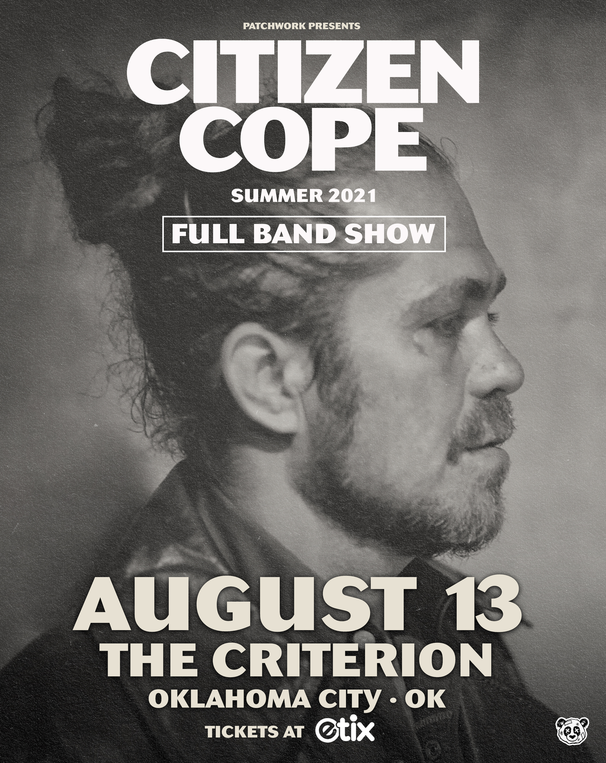 Patchwork Presents Citizen Cope Friday, August 13, 2021 Doors: 8PM // Show: 9PM General Admission Standing Room Floor ONLY, Balcony will not be open $1 per ticket will be donated to a charity of the Artists choice
