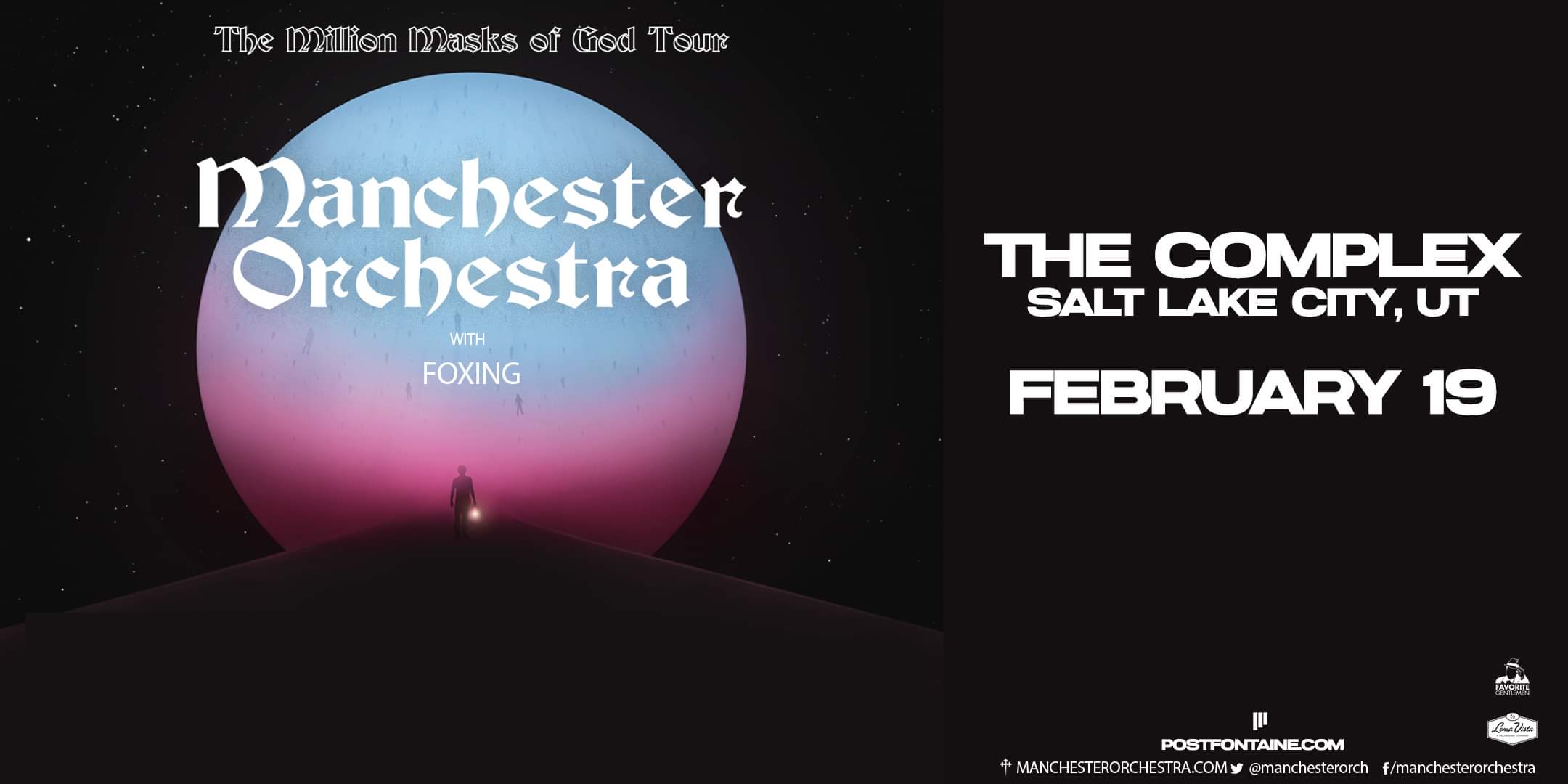 Postfontaine Presents: Manchester Orchestra at The Complex on 2/19/22! Get Tickets! All patrons and staff entering the venue will need to provide proof of vaccination OR a negative COVID test taken within 72 hours. For more info head here.