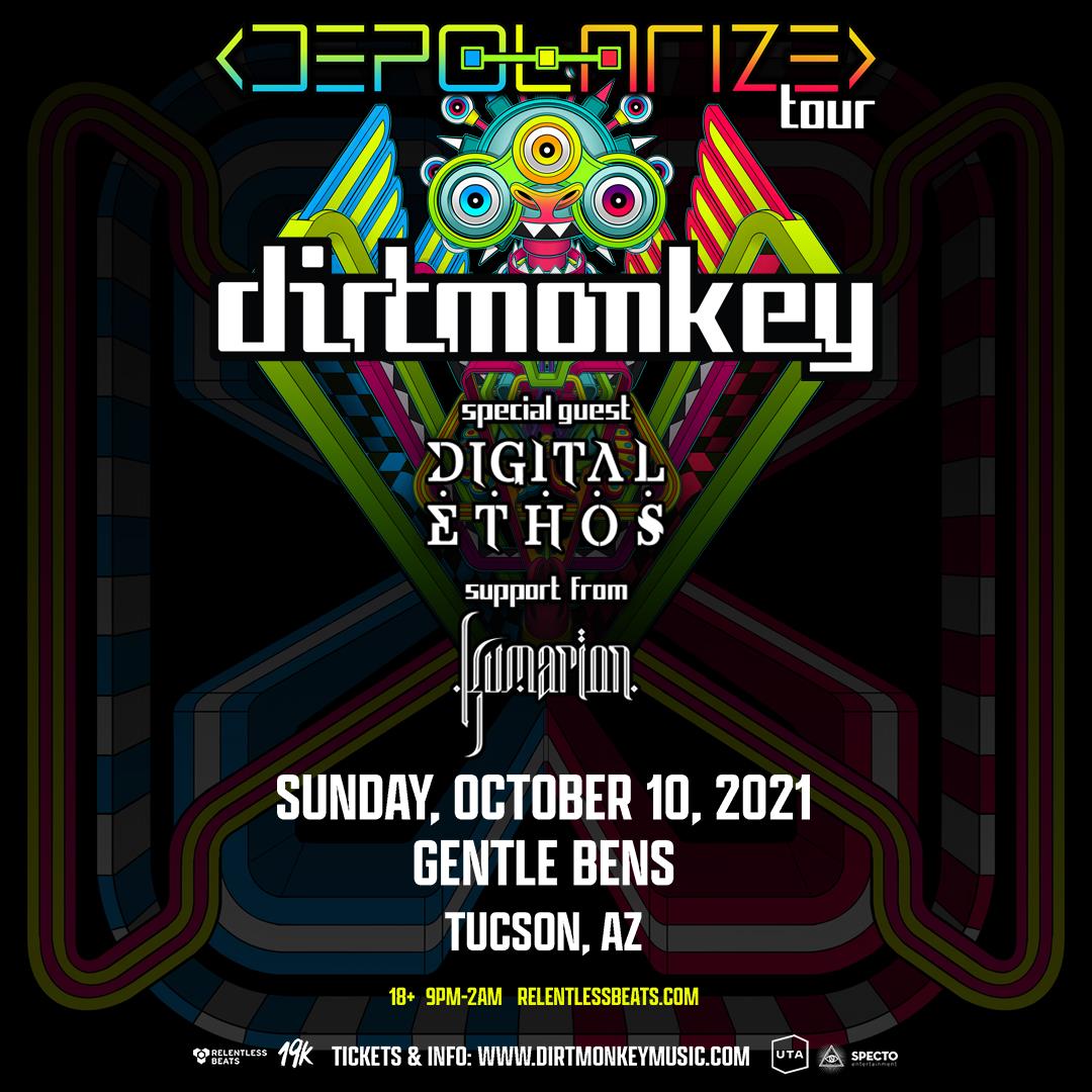 Things are getting weird when Dirt Monkey takes over Gentle Ben's for his Depolarized Tour on Sunday October 10 👁🗨🙊 Tickets on sale Friday at 10am PT -- http://rb.ht/DirtMonkeyTuc21