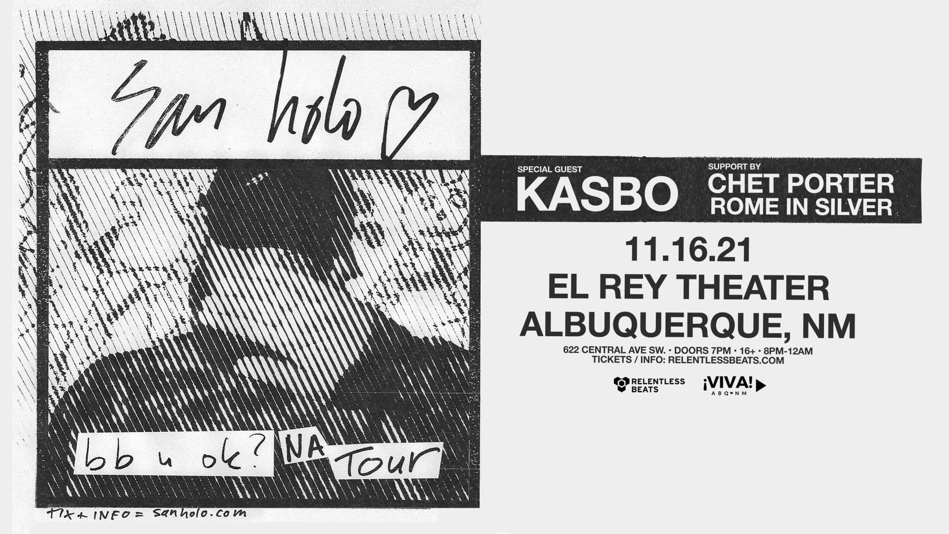 San Holo bring his bb u okay? tour to The El Rey on Tuesday, November 16. Support Kasbo Chet Porter Rome In Silver Tickets on sale Friday May 28 at 10am PT -- http://rb.ht/SanHoloABQ21