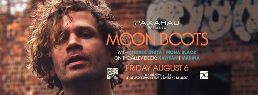 Paxahau + Magic Stick Present: On The Alley Deck: Kawsan and Marina Friday, August 6th, 2021 Doors 9pm / Show 9pm 18+ $15 - $25 Tickets: majesticdet.live/moonboots Follow Moon Boots Facebook: www.facebook.com/moonbootsmusic/ Instagram: www.instagram.com/moonbootsmusic/?hl=en Soundcloud: soundcloud.com/moonbootsmusic Twitter: twitter.com/MoonBootsMusic