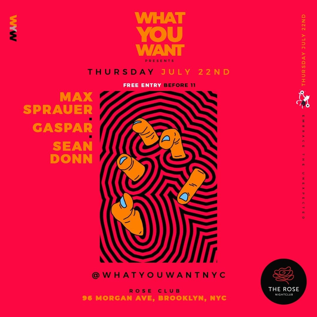 This Thursday July 22nd rising local talent Max Sprauer, of Bitrate and Pearled records, joins us alongside Brazilian groove master Gaspar and What You Want co-founder Sean Donn. Groovy House and Tech all night long!