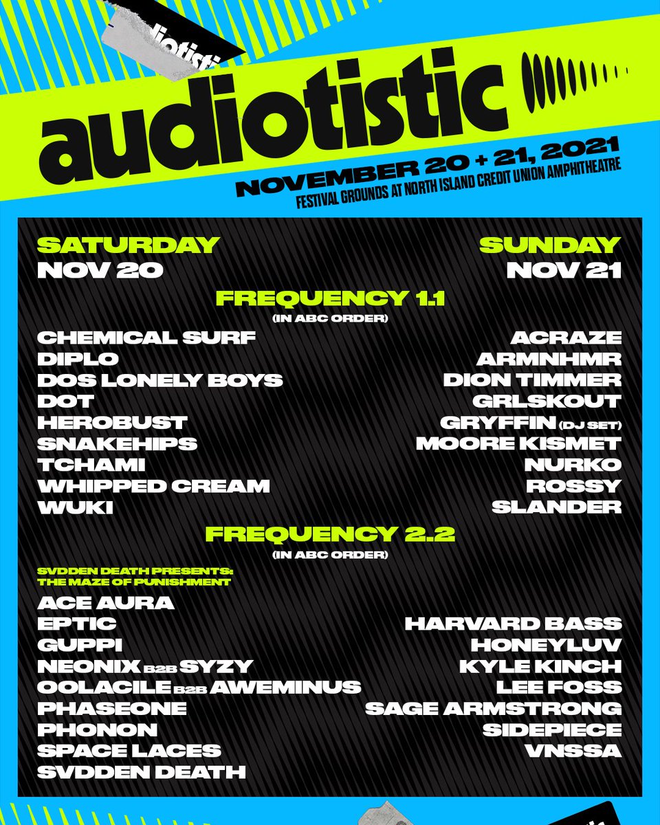 Today, Insomniac announced the return of a fan favorite, Audiotistic SoCal, but in a brand NEW city and location. Insomniac’s broad-spectrum, genre-blending brand is heading to San Diego for the first time ever at the North Island Credit Union Amphitheatre – featuring TWO days of nonstop music this Fall 2021 on Saturday, November 20th & Sunday, November 21st, 2021. Audiotistic San Diego will bring fans cutting-edge and unforgettable sets by the world’s top hip-hop and dance music artists.