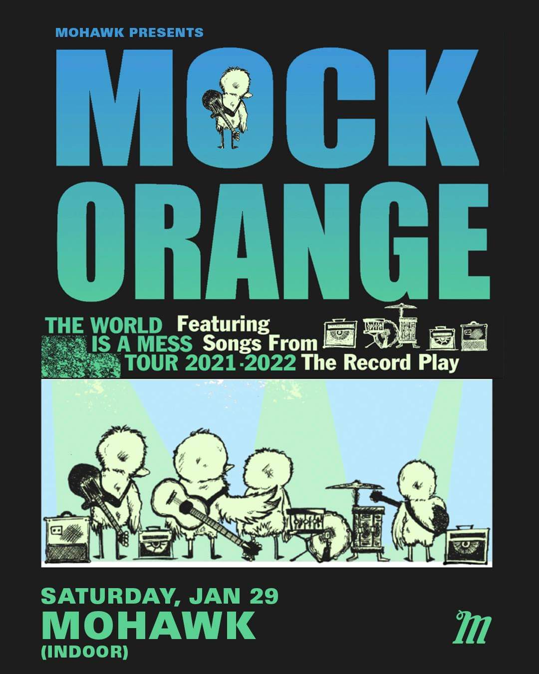 Mohawk Austin presents Mock Orange "The World is a Mess Tour" featuring songs from The Record Play Saturday, January 29th! -- Mock Orange -- "The Record Play" - bit.ly/2THk4Nu