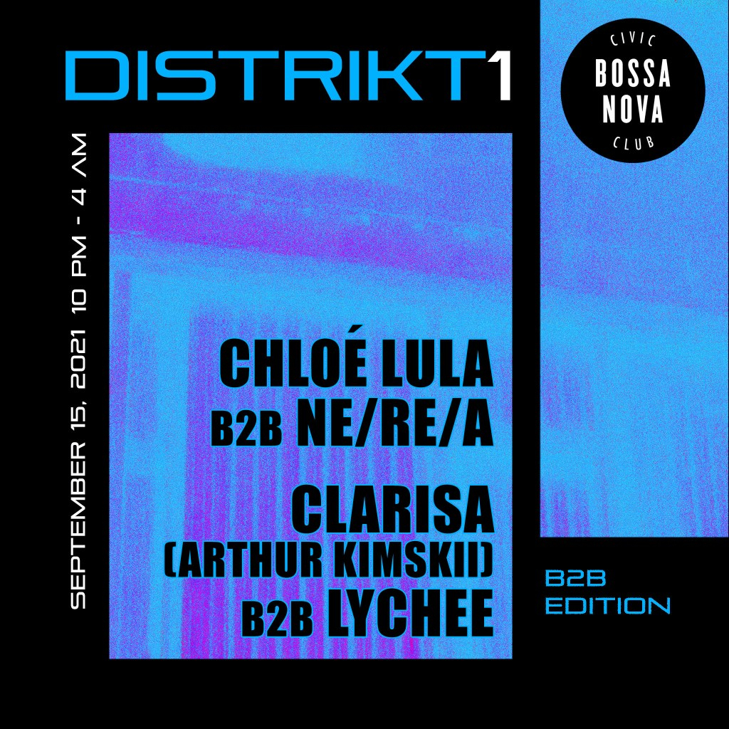 Chloé Lula / aufnahme + wiedergabe / Berlin b2b Ne/Re/A / Distrikt1 Clarisa (Arthur Kimskii) / Gradient / Monday Off / Washington DC b2b Lychee / Distrikt1