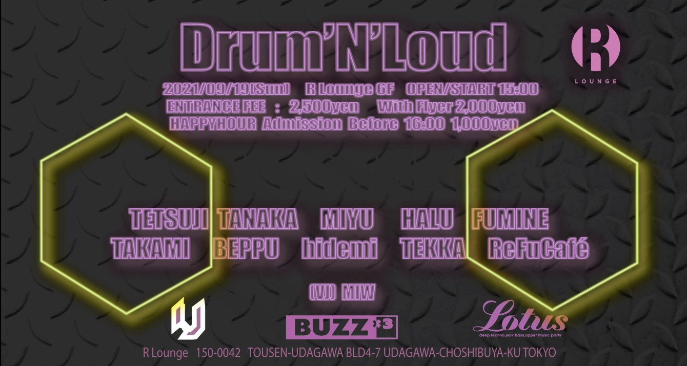 質高くアンダーグラウンドなSunday Afternoon Partyがフリーク達の間で好評の渋谷R LOUNGEにて、ジャンルの垣根を越えたDJ達が出演するD'n'B Party"Drum'n'Loud"が緊急開催決定! 日本のD'n'Bシーンを牽引し続けるDJsから、R LOUNGEで開催されるている人気実力パーティーを主宰するDJsなどの、この日限りのExclusiveなDJセットは堪能の価値あり!"