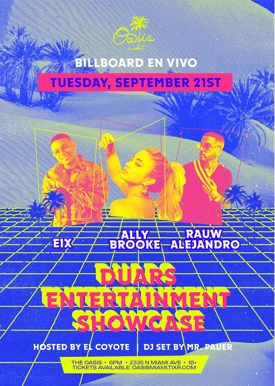 Billboard En Vivo! Duars Entertainment Showcase with Rauw Alejandro, EIX, Ally Brooke hosted by El Coyote and DJ set by Mr. Pauer