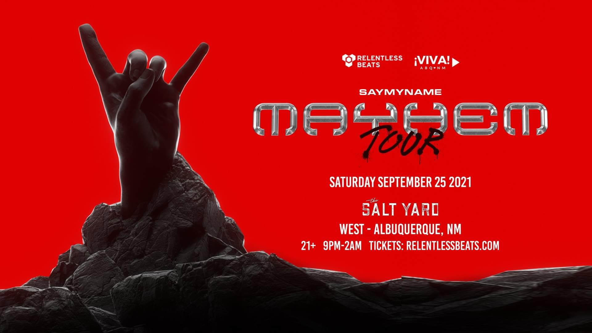SAYMYNAME is bringing the Mayhem to Salt Yard West on Saturday, September 25 🔥🤘 Tickets on sale now at https://rb.ht/SMNABQ21