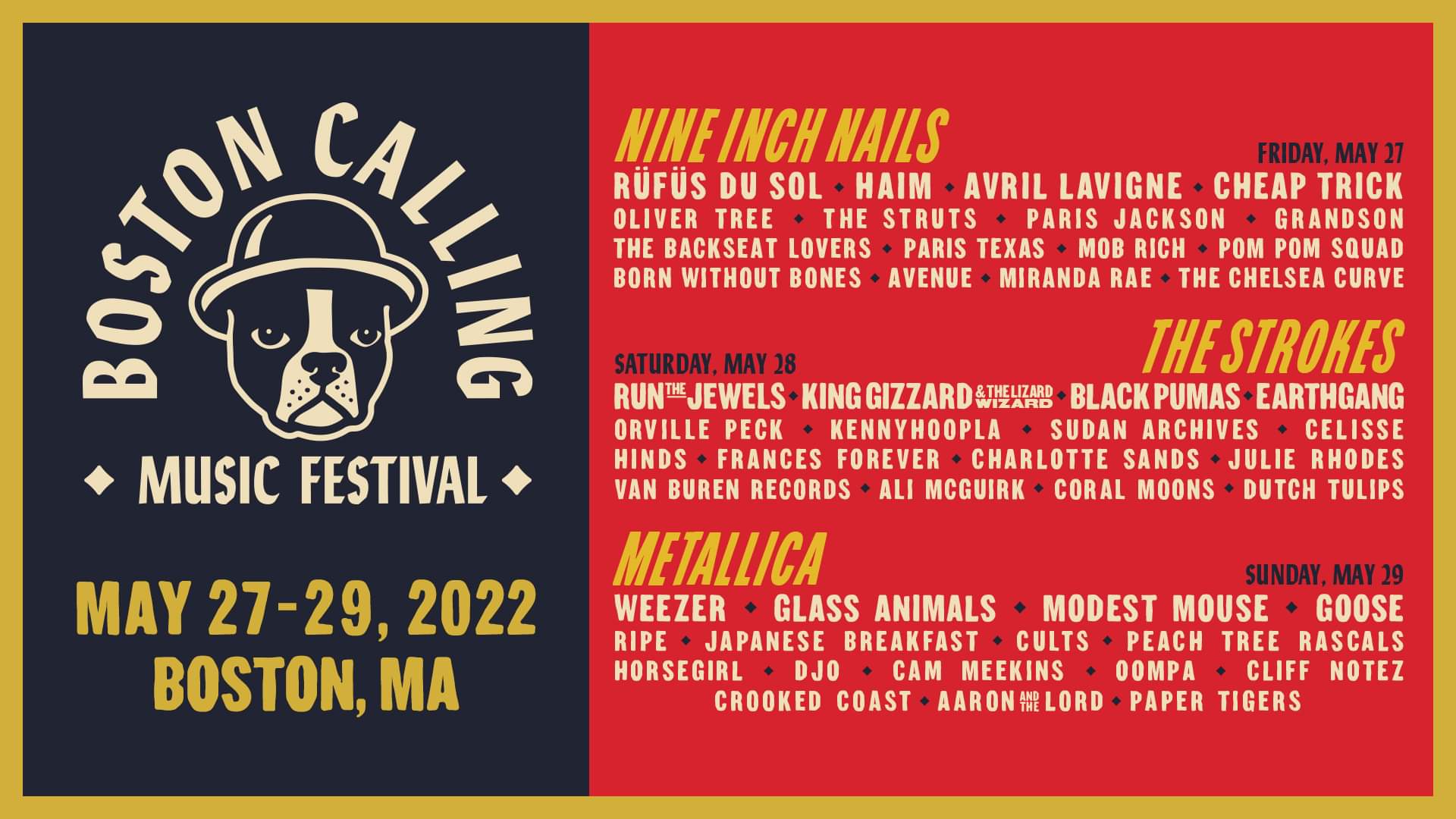 Boston Calling returns Memorial Day Weekend 2022 featuring Foo Fighters, Rage Against the Machine, HAIM, Run the Jewels, Black Pumas, EARTHGANG, KennyHoopla, Sudan Archives, Celisse and more to be announced, including an additional headliner. 2022 Early Bird Tickets tickets available now https://bit.ly/33XzvCP