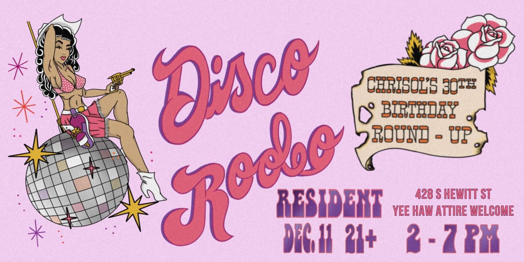 Chrisol's 30th Birthday Round-Up Enjoy a Disco Rodeo with Chrisol - featuring live performances by the Brown Boyz, DJs, drinks, food, and more!
