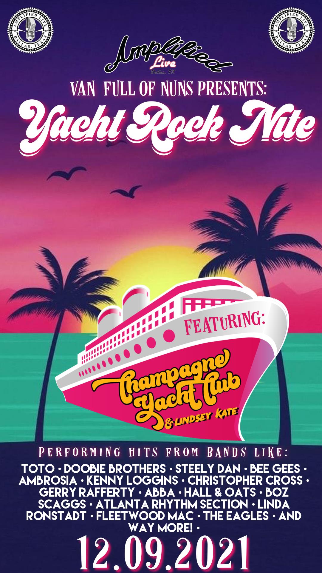Escape the winter with "Yacht Rock Nite!" presented by Van Full of Nuns! Hear the biggest hits live from bands like the Doobie Brothers, Hall & Oates, Steely Dan, and way WAY more all LIVE by "Champaign Yacht Club" & Lindsey Kate!