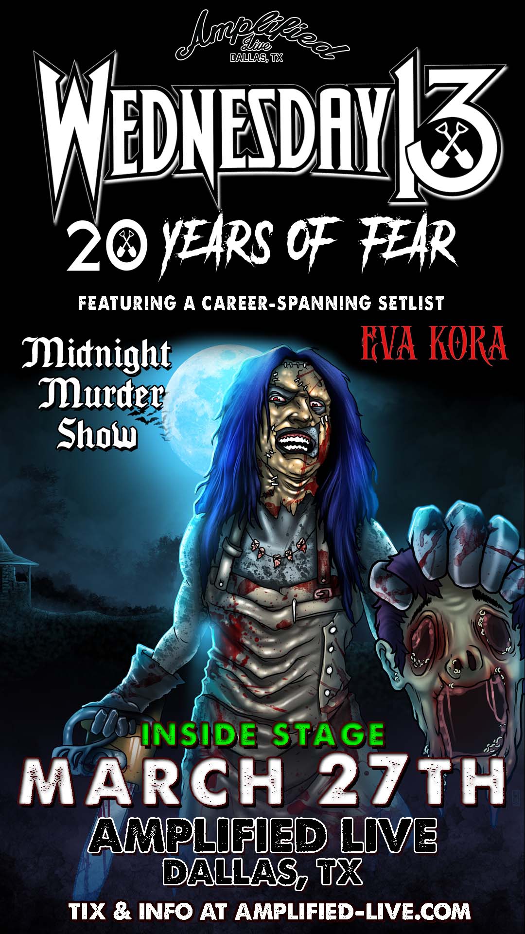 Amplified Live Presents Wednesday 13 - INSIDE STAGE with Midnight Murder Show EVA KORA March 27th, 2022 All Ages Doors 7pm Show 8pm