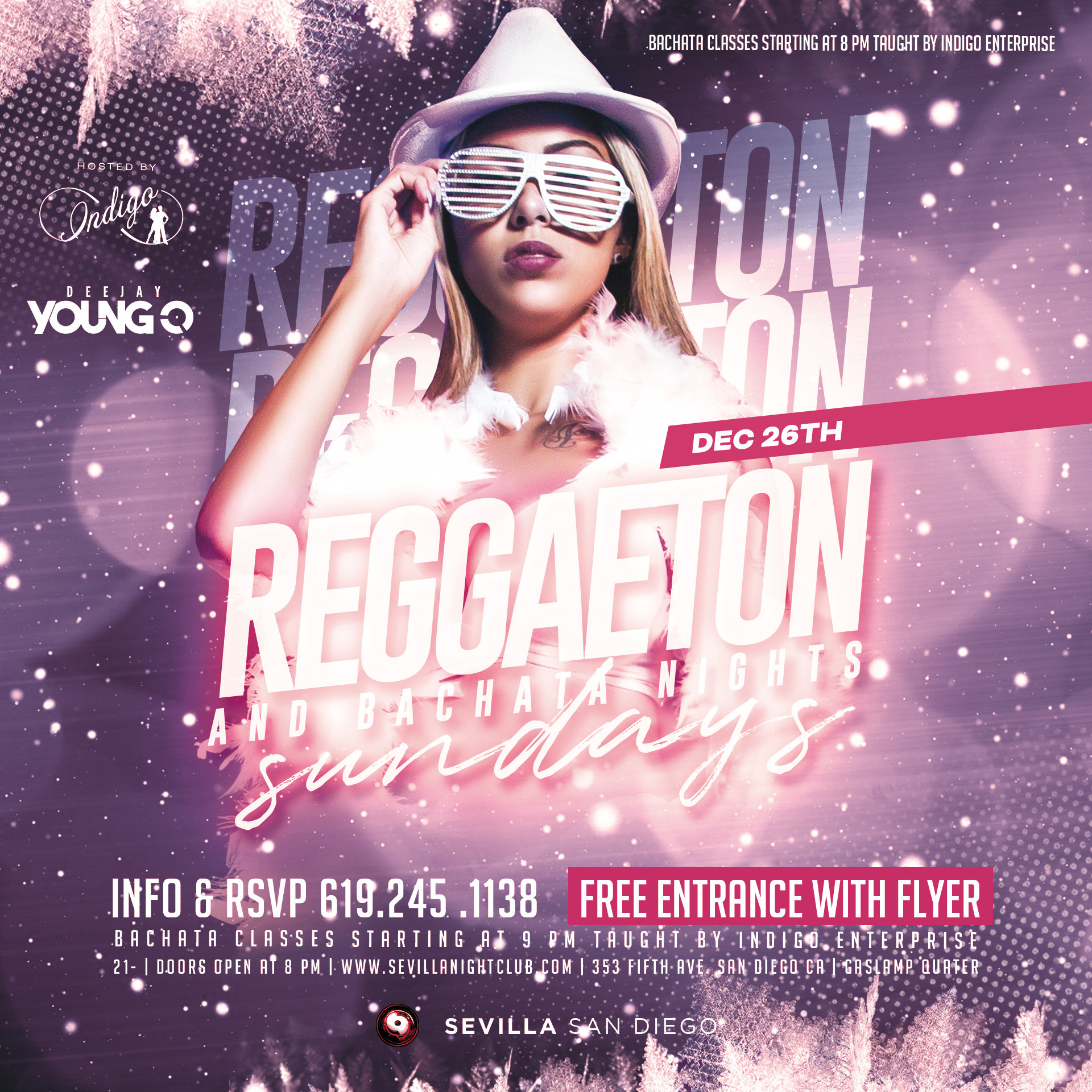 BACHATA Y REGGAETON SUNDAYS ALL NIGHT! Top Local Deejays Everyweek Don't Miss Out - Bottle Service Available Doors Open 9 pm FREE ENTRANCE WITH FLYER 21+ CLASSES TAUGHT BY INDIGO DANCE