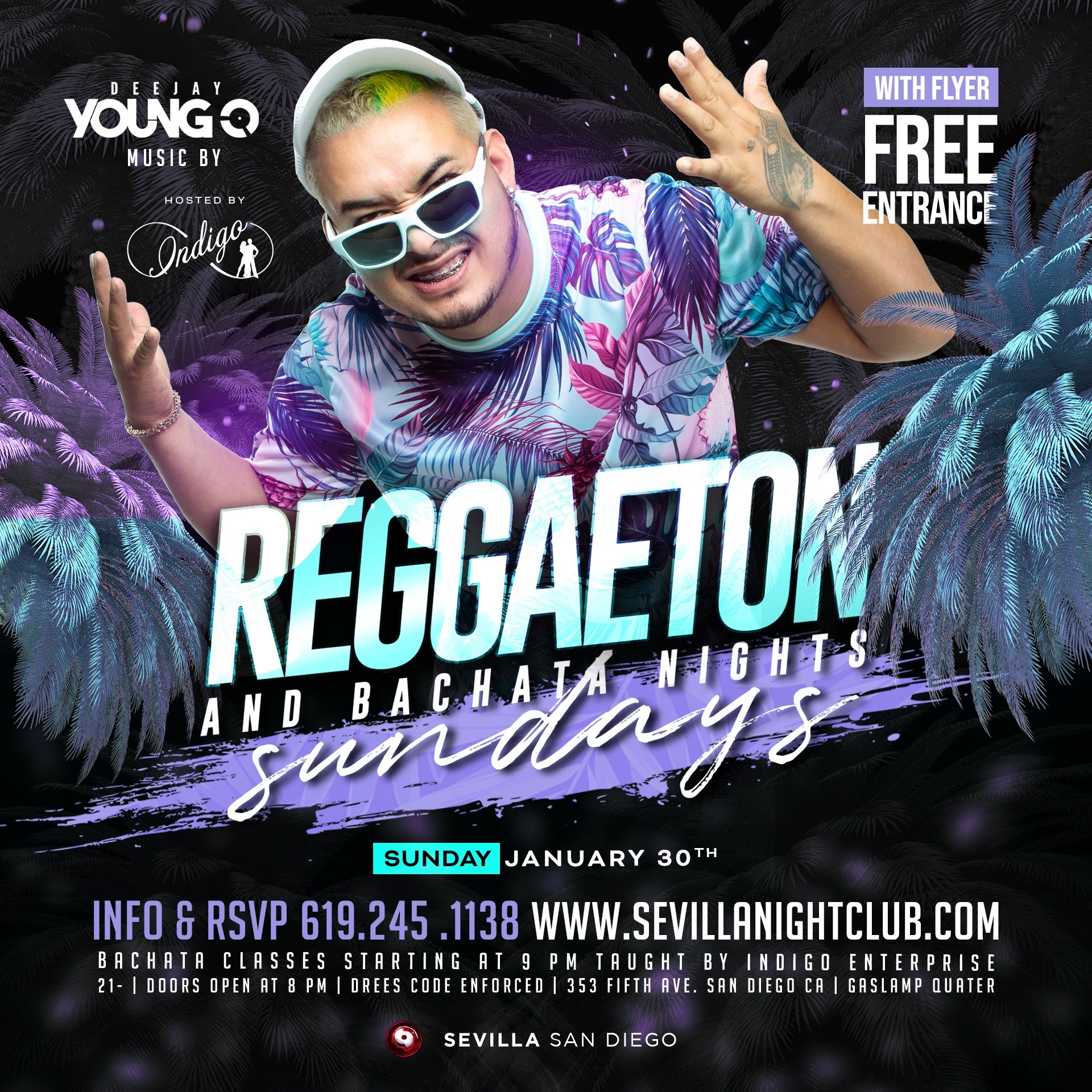 BACHATA Y REGGAETON SUNDAYS ALL NIGHT! YOUNG O in the mix Top Local Deejays Everyweek Don't Miss Out - Bottle Service Available Doors Open 9 pm FREE ENTRANCE WITH FLYER 21+ CLASSES TAUGHT BY INDIGO DANCE