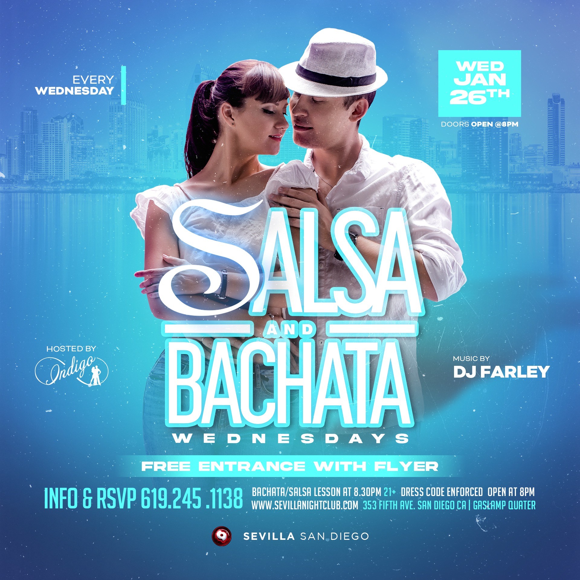 SALSA & BACHATA NIGHTS BY INDIGO WE Dance San DIego ! Classes Taught by INDIGO DANCE Salsa/ Bachata Lesson at 8.30pm FREE COVER WITH FLYER DJ FARLEY IN THE MIX Doors Open at 8 pm