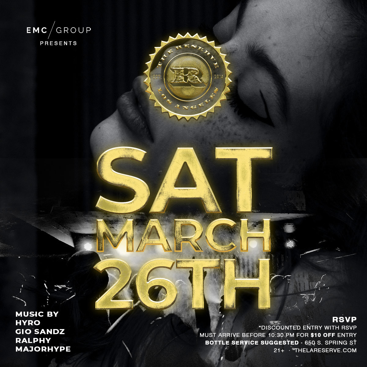 Come celebrate Reserve Saturdays with us here in the heart of DTLA! Come dressed to impress and ready to be on the dance floor all night long. 10pm - 2am, 21+ Interested in booking a table reservation?