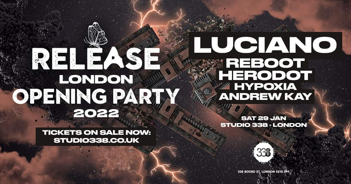 GENERAL TICKETS NOW LIVE - a mammoth year that has seen the likes of Marco Carola, Ilario Alicante, Steve Lawler, Richy Ahmed, East End Dubs dominate Release dance floors, it's now time to start the new year the legendary Luciano at our London home - Studio 338.