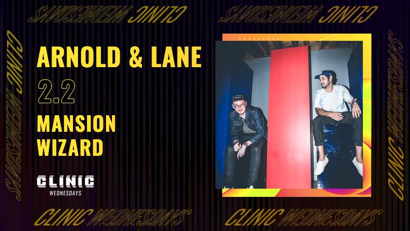 Clinic welcomes Arnold & Lane (Dirtybird) on Wednesday 2/2. Arnold & Lane / soundcloud.com/arnoldandlane • RSVP: www.clinicwednesdays.net • Reduced entry w/ RSVP before 11pm. • Pre-sale tickets: $20 GA • VIP Tables Available: - $200 Indoor VIP Booth (8 Tickets + Champagne) - $300 Indoor Dance Floor Booth (8 Tickets + Champagne)