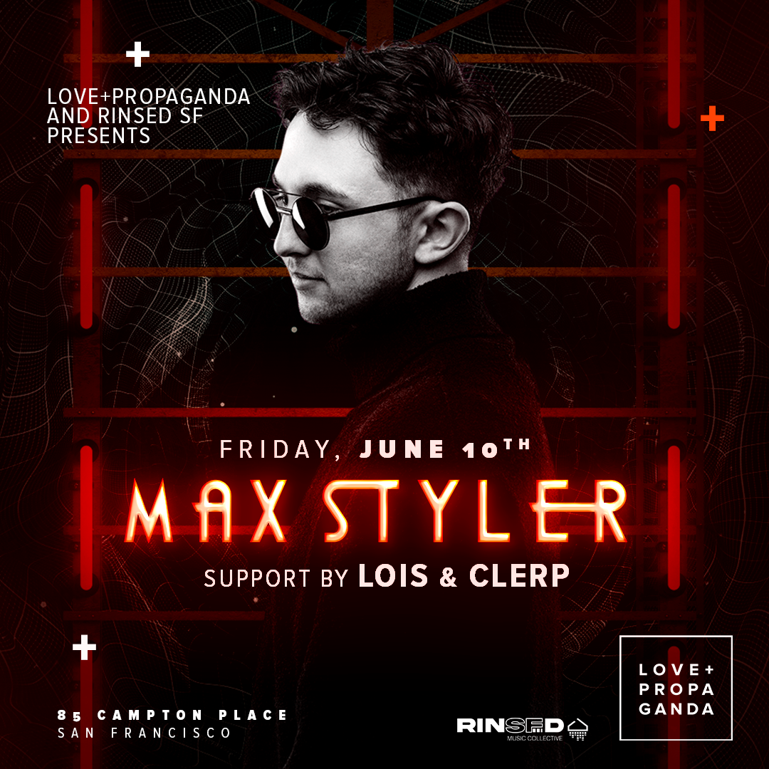 Max Styler and Rinsed SF crew are on June 10th at Love+Propaganda