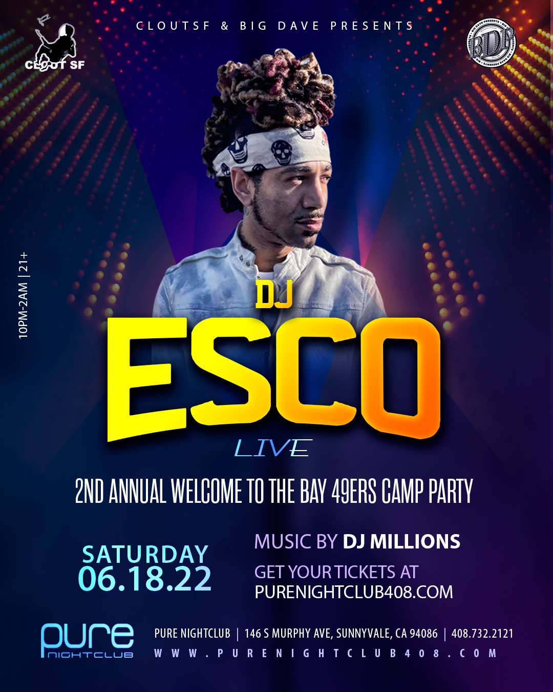 DJ ESCO Welcome to the Bay 49ers Camp Party! Top 40 | Hip Hop Bottle Service | dress code policy 21+ | All Sales are Final & No Refunds